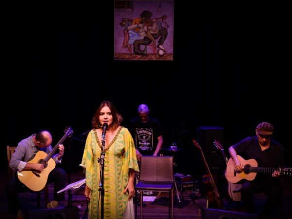 No palco, Maria Eugênia divide a cena com os músicos Ricardo Leão e Orlando Morais, sob direção musical de Luiz Chaffin. O repertório percorre diferentes épocas, estilos e compositores, revelando conexões entre tradição e contemporaneidade em uma experiência que une memória, informação e emoção.